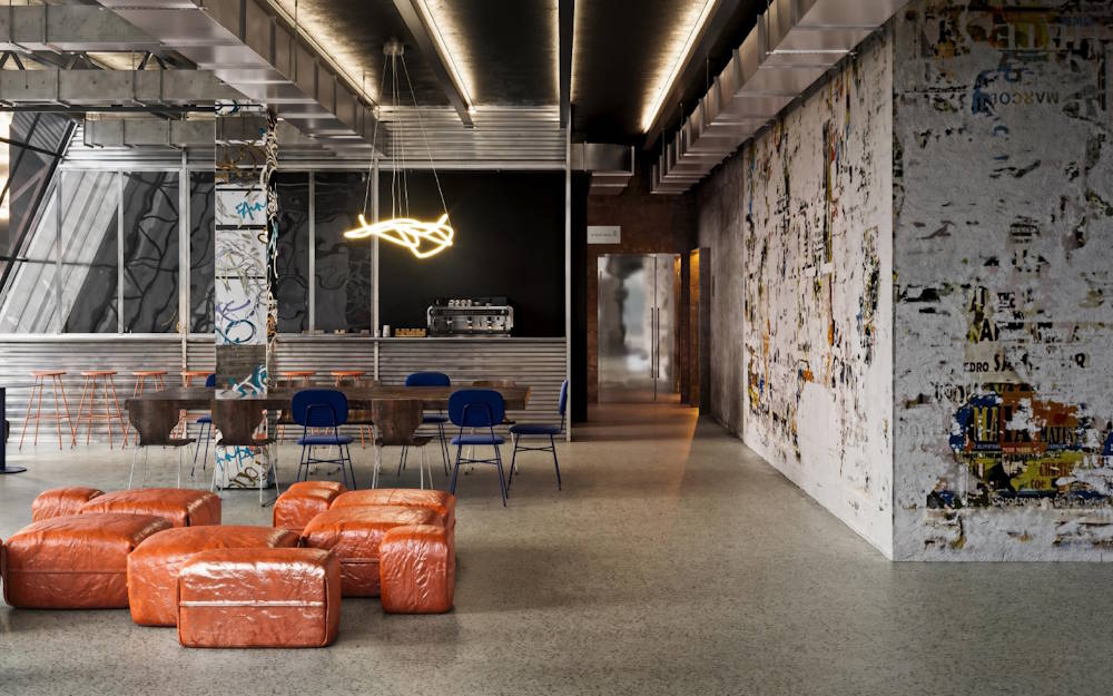 Интерьеры молодёжного театра разработала студия Self. В фойе, например, можно заметить элементы «индустриального шика» и молодёжных субкультур - обильные граффити и неон. Граффити-стену – зрители смогут дополнять самостоятельно – стикерами, отзывами, фотографиями, своим творчеством.