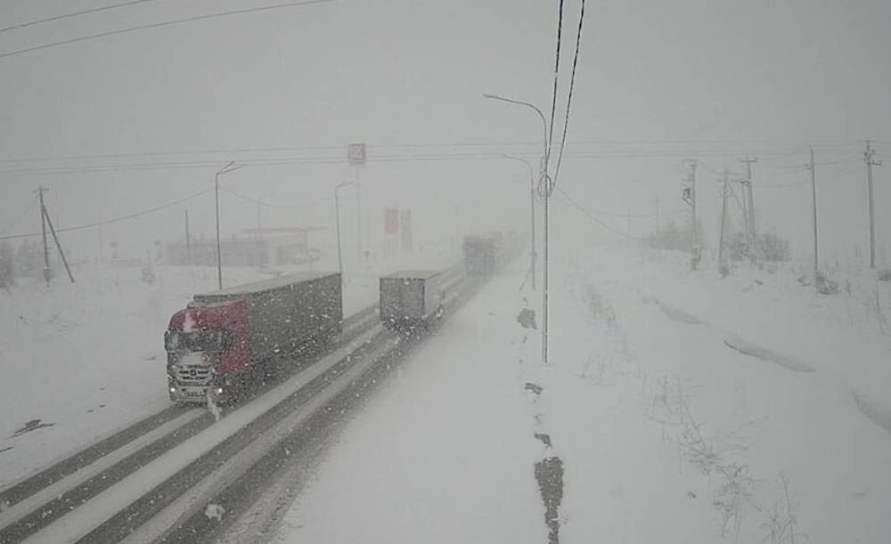Сильный снегопад затруднил движение на трассе Пермь - Екатеринбург