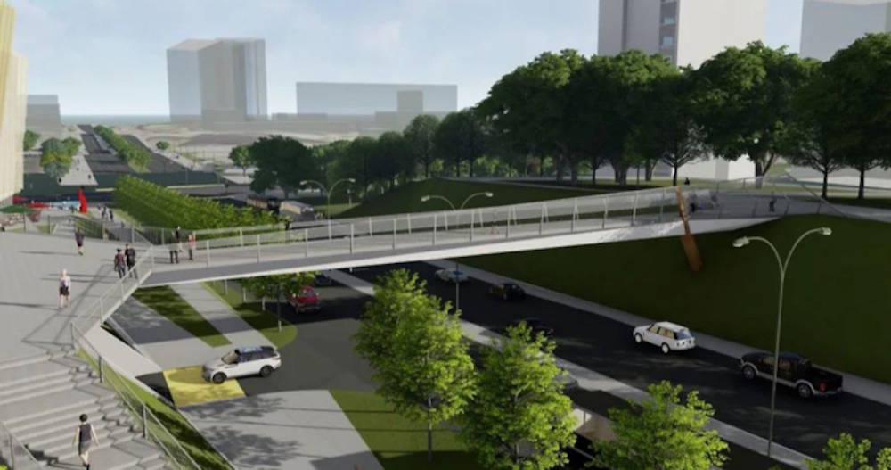 Наземный переход в районе эспланады будет построен через ул. Попова. Он разместится рядом с МФЦ «Эспланада» и свяжет участки ул. Советская. Подземный переход будет построен от МФЦ «Эспланада» через ул. Монастырская к кварталу, ограниченному улицами Осинская, Монастырская, Попова и Окулова.